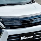 フェイスグリルは面を広く確保したマークレス仕様で、横幅を広げワイド感を強調。上段部が交換型、下段部が被せ型の2ピース構造だ。