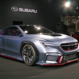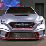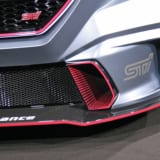 SUBARUが提唱する、安心で愉しいクルマの将来を具現化したスポーツセダンで、昨年に世界初公開された当時には”STI”の名称は入っていなかった。今回は、STIブランドにふさわしい特別なエクステリアを投入。専用フロントバンパー、サイドステップ、トランクスポイラーなど、攻撃的なフォルムへと進化を遂げていた。