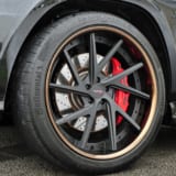 また、見逃せないのがホイールのリムカラー。ブロンズを差し色にセレクトした。AMGである証のレッドキャリパーが浮いた存在にならないよう、足元に微妙なコーデを生み出した。