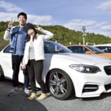 志茉サン「アルファロメオGTで知り合い今回は夫婦で参加。アクセルをいっぱい踏めてクルマの本性を知りました」。