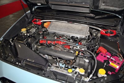 後期型WRXのイメージを演出しつつ、冷却性能を向上させ、「レヴォーグ」にフィットするよう制作されたものだ。物販では同社が誇る剛性アップパーツ『AGRESS ボディサポート システム』を販売中。こちらも見逃せない。