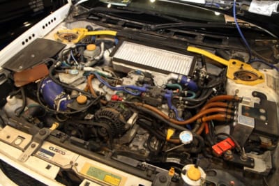 ロールケージまで組み込まれた本気仕様の「WRX STI」と思いきや、なんと先代「インプレッサG4」をベースにEJ20を搭載した悶絶マシンは「プレジャーレーシングサービス」のデモカー。オリジナルパーツの販売からジムカーナ壮行会まで幅広く手掛ける同社では、車高調やエアクリーナーといった定番アイテムから、ローギヤ化されたファイナルギヤや各部のブッシュ類まで降りなるアイテムを取りそろえる。今回のオートメッセではイチオシのコントロール性にこだわったスポーツブレーキパッドを中心に販売中だ!
