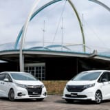 ぞして、もう1台のホンダ・フリードはホヤホヤのニューカマー。こちらもフロントまわりのリメイクとなるバージョンだが、従来モデルを「スタイルB」、今回の新作を「スタイルA」と位置付けて、2つの顔で選択肢が増えた。こちらのフロントグリルは全5色のカラー設定を用意し、フェイスを引き締めるクリスタルブラックも設定。また、タイプBよりもエッジを強めたアンダースポイラーは、LEDイルミをオプション展開する。
