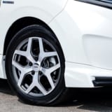 スポーク部をリムオーバーでデザインしたアルミホイール「MD5」はフリード専用設計。コンパクトミニバンをひとまわり大きく見せる迫力を持つ。