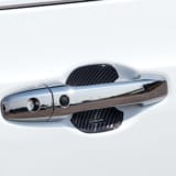 ドア開閉時の引っかきキズを防止でき、カーボン調のシボ加工でドアハンドルをスポーティに演出する「ドアハンドルプロテクター」。フロント、リアにマッチ、2枚セット。