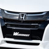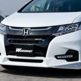 1台は咋秋にマイナーチェンジしたホンダ・オデッセイで、ベース車のフェイスリフトに合わせてフロントアンダースポイラーとフロントロアグリルガーニッシュへ新意匠を採用してきた。フロントグリルはツヤ消しブラックとのコーデでカスタムの幅を拡大。スポーティさに磨きをかけるプログラムとなった。