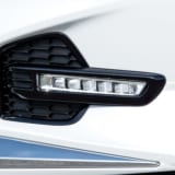左右にメッキのガーニッシュを配したアンダースポイラーがエッジを際立たせる。純正フォグランプがそのまま活かせられる親切設計。スポーツグリルはトーンを抑えたフィニッシュがポイント。