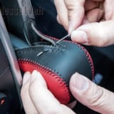 ステアリングを外すことなく、両面テープで素材を固定して、あらかじめ施されているステッチをすくうようにして縫い合わせていくだけ。裁縫が苦手な人でも問題なく、誰でもプロ級の張り替え仕上げを実現できるのが魅力だ。