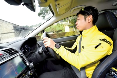 刻一刻と変化する状況に応じてクルマの位置を考えるだけでなく、プロライダーの走りに帯同できる高いドライビングスキルも要求される。レース直前直後の移動ではクルマの周りを走る自転車も多く、サイドビューモニターや大画面のバックモニターは安全確認に欠かせないという。