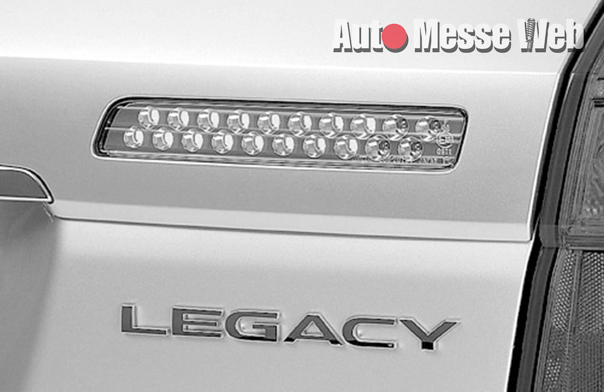 LEDタイプのリアフォグランプを採用した、BP型レガシィ。左側のバックランプとのレンズ面積を同一としたデザインだが、ストップランプとの距離を確保するために右側2列はダミーとなっている。ちなみに後期型ではデザインが変更されダミー部分はなくなった。
