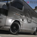 遊び用の1台は、あくまでもオーナーのデモカー。最大の見どころは木材をふんだんに使用して作り上げた室内空間だろう。きっかけは店舗関係のショーに自社のブースを出展する際、「設営・撤去が大変だからクルマの中にブースを作っちゃおう」というノリ。来場者の驚く姿を見て喜んでくれることが、なによりも嬉しいという。
