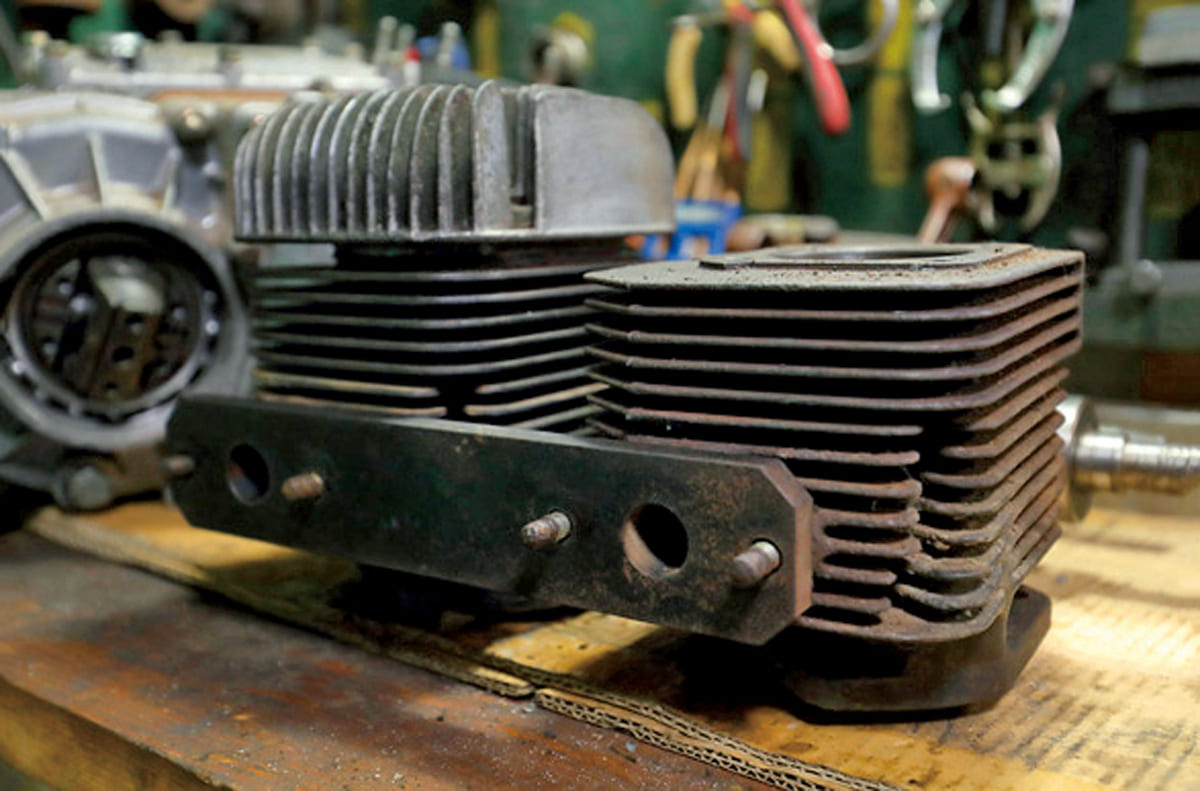エンジンをオーバーホールなどから組み上げる際、2気筒のシリンダーを左右で綺麗に並べるための治具があると失敗するリスクが低くなる。位置がずれるとインマニが割れるトラブルが発生しやすくなるという。ちなみに空冷シリンダーは黒い方が冷えやすいらしい。