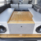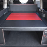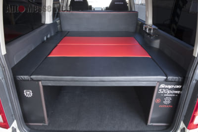 このベッドキットの下にバッテリーなどを含めたハイドロシステムが作り込まれている。ベッドキットもワンオフでカラーリング。
