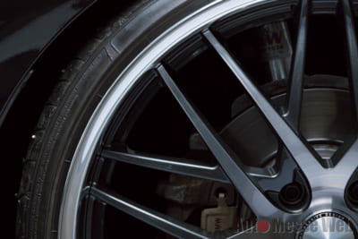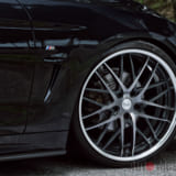 「メイカーズ」製作のF32型4シリーズが装着する『DM10』は、一見するとプレーンなメッシュモデルだが、前述の通りダブルフェイスデザインの視点で眺めると、2枚のツインスポークモデルを重ねたデザインが浮かび上がってくる。