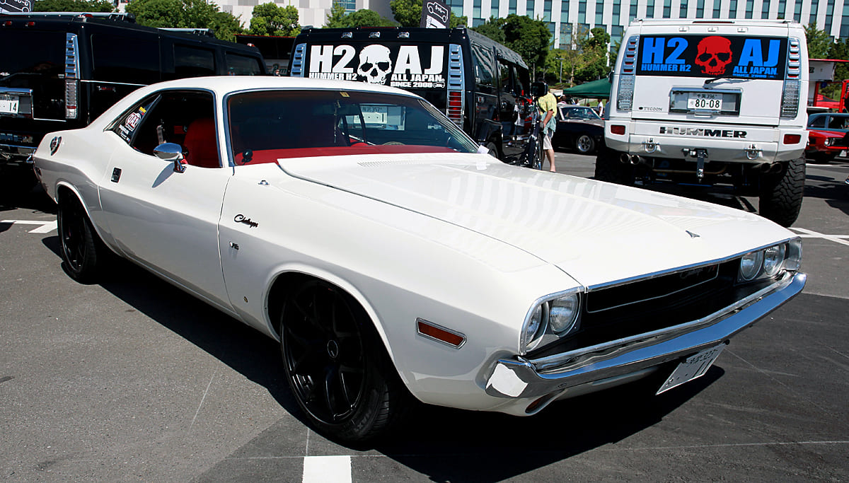 一見するとボディパネルはノーマルだが、リアにはドラッグレースなどで太いタイヤを装着するためのデフケースの幅を縮めたナロードデフが入っている。ボンネットから突き出しているのはおなじみスーパーチャージャー。