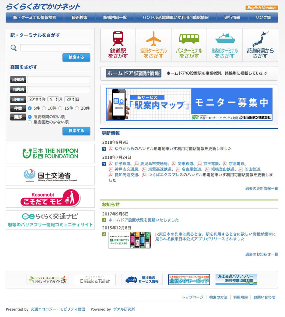 なお「らくらくおでかけネット」というサイトで、鉄道各社のセニアカー利用可能駅情報がPDFにまとめられています。同サイトでは経路探索の結果からエレベーターなどの情報を取得できるコーナーもあります。
