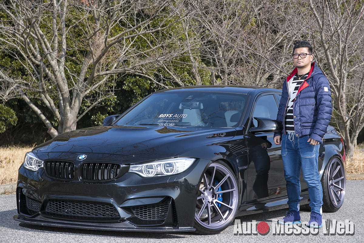 ノーマル状態では乗らない主義だという伊藤サン。BMW M6グランクーペから乗り換えたM3のフロントとリアには、コーレンストッフを纏い、足元にはニュートレイルをセット。この淡いパープルが実に秀逸で、黒のボディカラーによく映えます。ホイールカラーを引き立てるブラックグリルもいい仕事ですね。