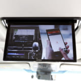 これは開閉方法やモニターの設置面を従来モニターとは逆にした「バックフリップ」によって実現した。バックフリップの採用で、大画面モニターがリヤシートに近づきより迫力ある映像を楽しめる。さらに、運転席からはモニターまでの距離が遠くなっているので、ルームミラーからの視界を妨げることを低減というメリットもある。