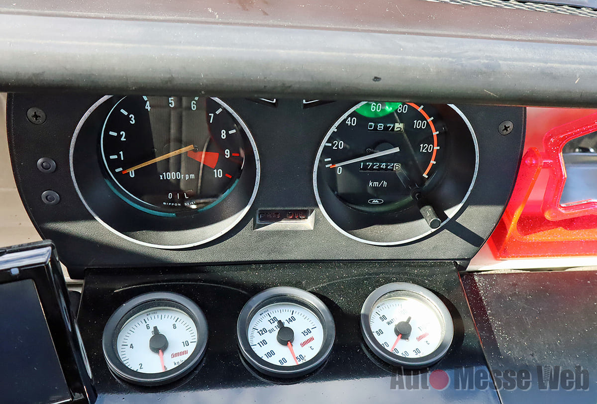 さらに、2連メーター左側の水温&燃料計はタコメーターに、右側のスピードメーターはトリップ付きに変更。油温や水温、油圧といった欠かせない情報は、後付けメーターでしっかりとチェックできるようになっていたのです。