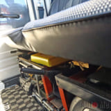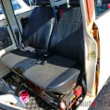そして内装。まず目に飛び込んできたのが、ベンチシート化した前席。運転席と助手席との間にあるサイドブレーキレバーは、ベンチシートと干渉するために取り付け位置を下方にしたそうです。