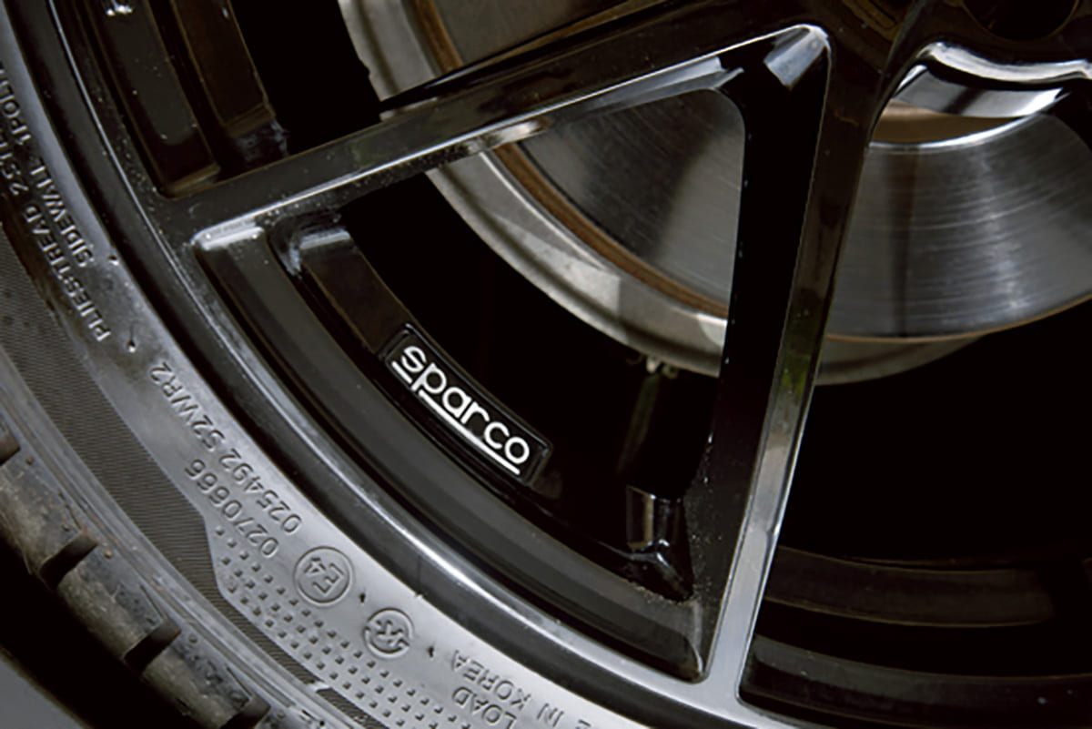 デモカーが採用したスパルコ・ポディオは、サイズ、デザインともに、まさに瀧井代表がF56型ミニ3ドアで描きたかったイメージに完璧に当てはまる一本だったようで、ティーズクラブ界隈ではすでに人気が沸騰しているとのこと。グロスの黒、というカラーコーディネイトにもF系だからこそ似合う新しさが感じられるが、このあたりも当然、計算済みだ。