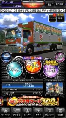 スマホアプリ『デコ★姫』とは、「仕事」「バトル」「タイマン」「ガチャ」など各種ステージでパーツをゲットし、自分の愛車トラックをアートアップしていく。