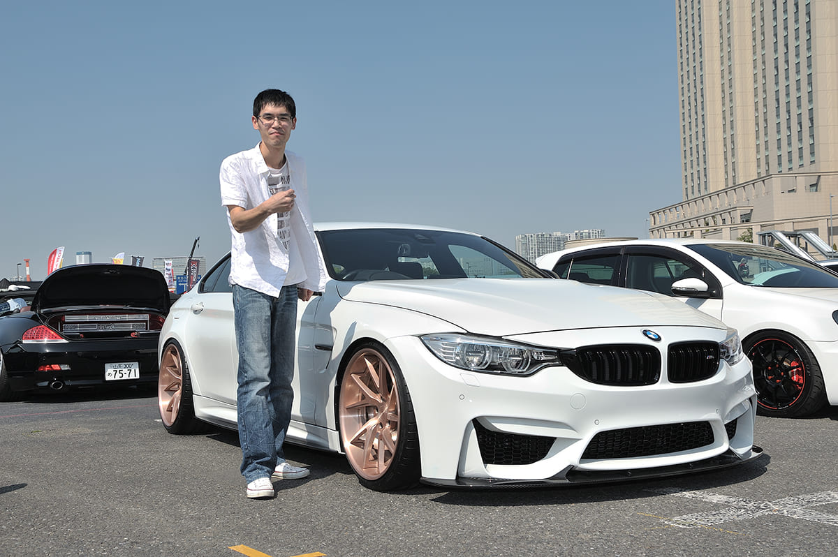 フェンダーやフロントフェイスばかりに目がいきますが、ボンネットもしっかりとM4の純正品。想像以上にM4ルックは大手術が必要でした。その分、インパクトはデカいので待ち時間の長さも帳消し。ブラッシュドローズゴールドで色気のある仕上がりになっているホイールとのマッチングも上々です。