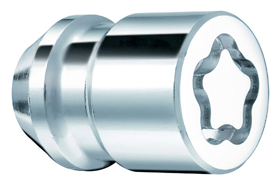 BMWやアルファロメオ、フィアットといった数多くの欧州車に対応するホイールロックボルト。ナット頭部に付けられたスピンカラーが、プライヤーなどの工具によって不正に取り外されるのを防止する