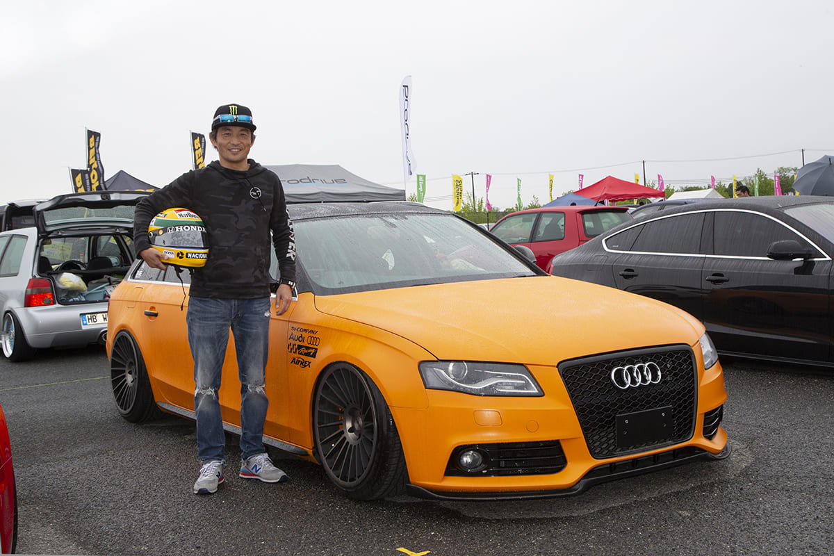 アウディでローライダー風というのがユニーク。フルラッピングしたボディのルーフやミラー、リアアンダーはステッチ入りのレザー調なのが特徴です。
