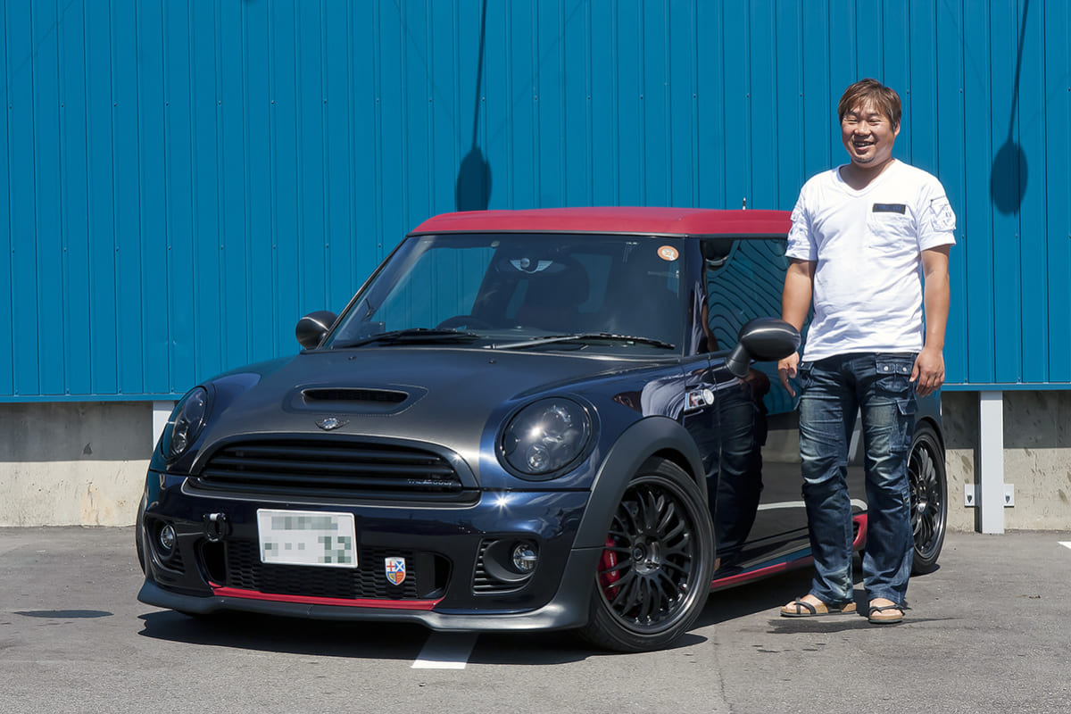 ルーフ&ボトムの赤い部分にはレザー調のフィルム、ヘッドライトはドットラップを使用。さらにボルクレーシングC345とブレンボブレーキシステムで組み立てた足もとには、よりファンな走りを求める姿勢が表れていました。