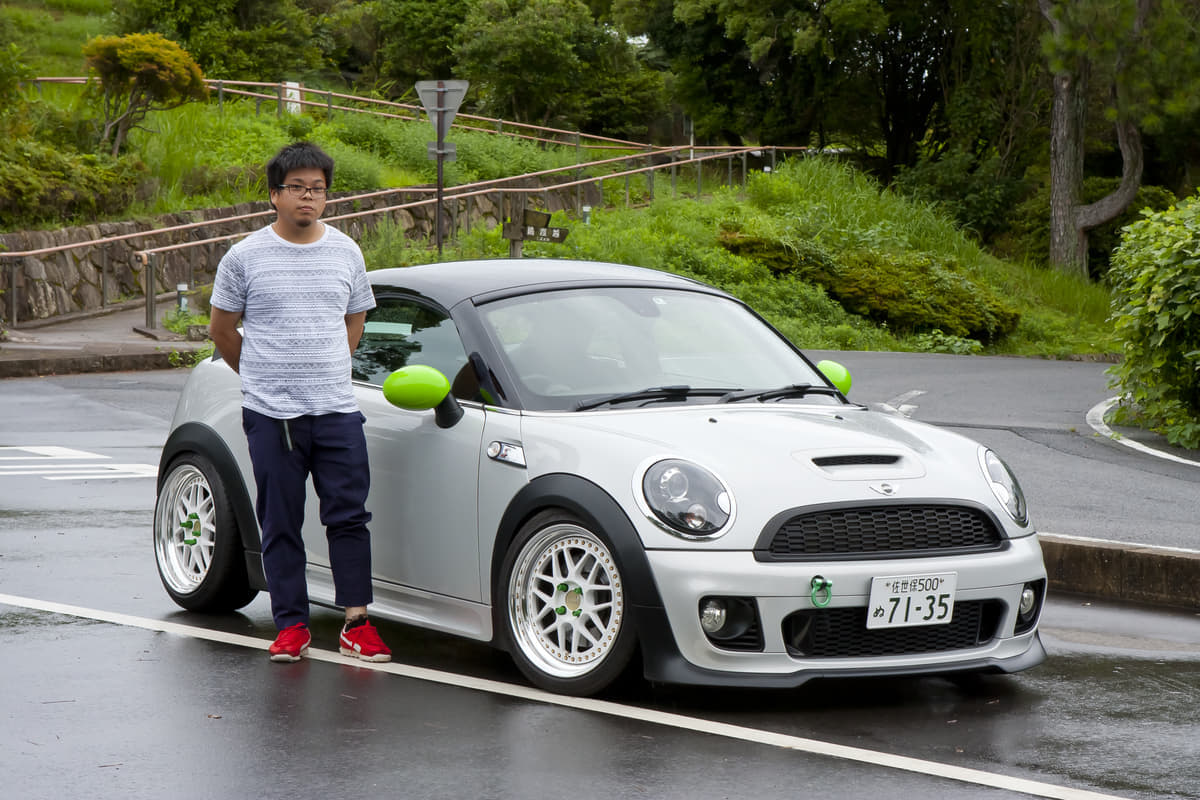 長崎から参戦したミニ・クーペが見事、ナンバー2にランクイン。スタイルの核となっているのがホイール。バランス重視でセレクトした小径履きがコンパクト&ローな肢体を際立てるとともに、ディスク×ピアス×ナットの3色構成がオシャレに演出。フロント7.5J、リア8Jで仕上げたツラ感&深度感も美しく、足もとへの意識の高さが伺い知れます。このレオンハルト・ゲミュートの17インチ履きというスタンス作りの着眼の鋭さもさることながら、ホイールまわりのカスタムカラーやピンポイントで各部に差し込んだグリーンの配置がまた絶妙です。