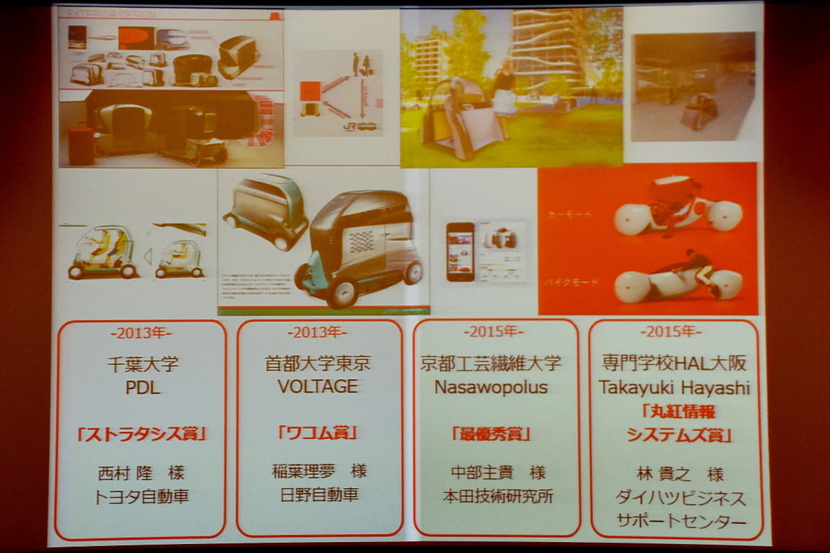 発表会では、過去のコンテストで上位入賞者の中から、現在実際にトヨタ、ホンダ、ダイハツ、日野で活躍している若手デザイナーが集まり、座談会を開催。この場でも、このSNSやワークショップでの活動を通じてお互いの作品を確認し切磋琢磨していったとなど、このコンテストの特徴的な点についても語られた。