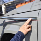 このモールのメイン素材はTPO(オレフィン系エラストマー)という、弾性体があり、ゴムのような性質を持ちながら、一般のプラスティックと同様な成形加工のできる合成樹脂。塩ビに比べ温度変化による劣化が少なく、耐候性に優れるほか、ゴムより軽量など、最近は自動車用部品として注目されている素材だ。