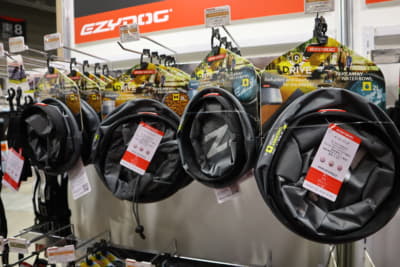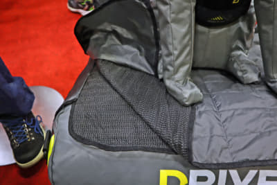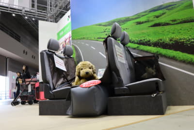 新東亜交易が展示していたのは、特殊加工ナイロンにキルティング加工を施した自動車用シートカバーです。『EZYDOGドライブ シートカバー』は丈夫で肌触りがいいだけでなく、ワンちゃんの使用を考えた耐久性に優れた設計。しかも取り付けは、シートのすき間に付属バーを差し込み、ストラップをヘッドレストに固定するだけとカンタンなのです。