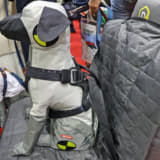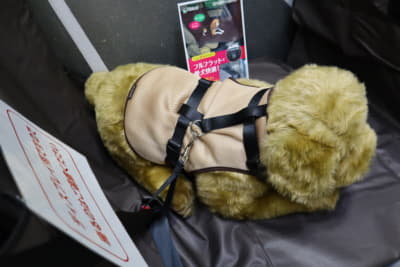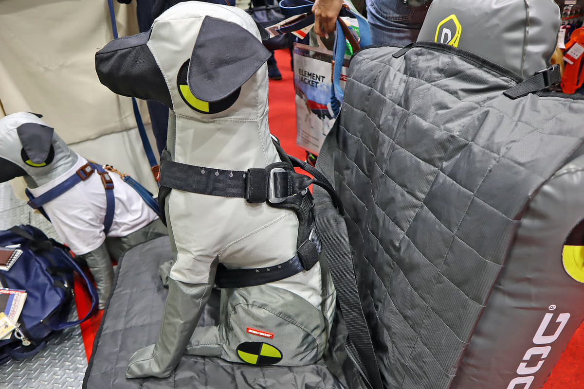 また、大型犬の移動に最適なドライブベストハーネスもお披露目となりました。こちらは、シートベルトに繋げてペットの飛び出しを防止するもの。犬に負担がかかりにくいベストタイプで、小型犬から大型犬までの4サイズを用意してます。