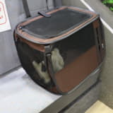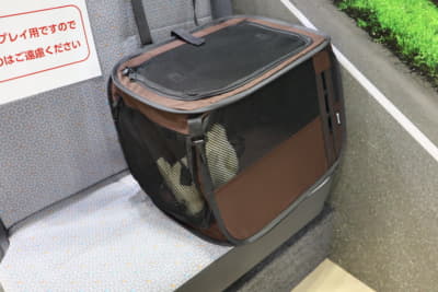 他にも給水ボトルの取り付け、愛犬の出し入れがラクな巻き上げ式の扉を採用。こちらもコンパクトに折りたためるので、使用しないときはシートに取り付けたまま畳むことが可能です。超小型犬から中型犬に対応する全3サイズを展開。