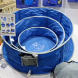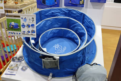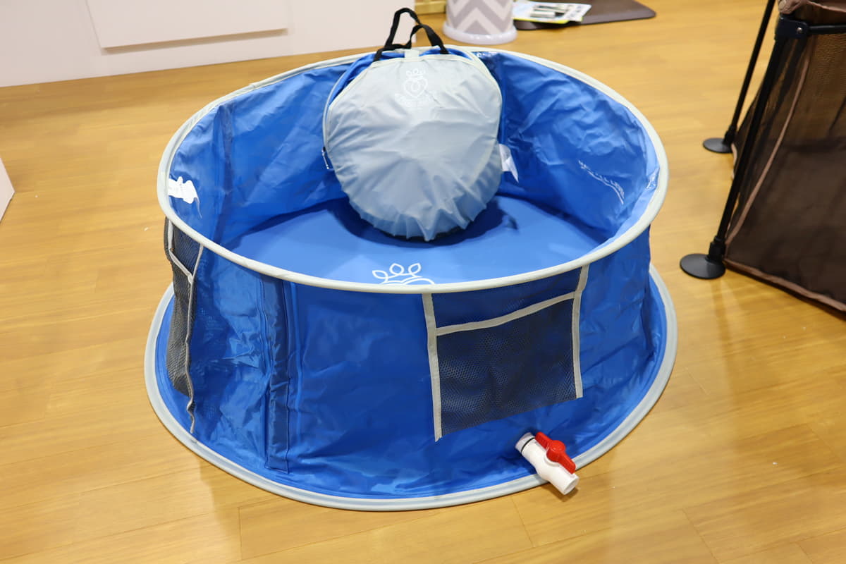 日本育児がペット向けに発売したのが『たためるペットプール&バス』。名の通り、ワンちゃん用のプールで、パッと展開できるポップアップ式を採用。折りたたむとコンパクトに持ち運び可能で、重量も1.2kg(Mサイズ)とアウトドアシーンでも活躍しそうです。