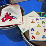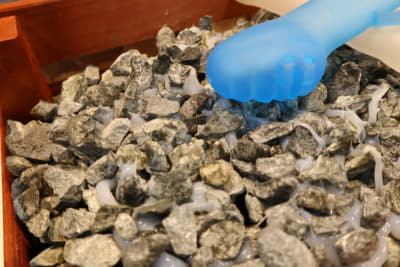 後部シートの大きさにあわせてサイズ調整も可能で、裏面はラバーゴム加工によって滑りを防止。コンパクトになる収納袋も付属するので、未使用時は車内で邪魔になる心配もございません。他にも折りたたみ式の餌入れや水入れも展示。こちらもコンパクトに収納できるのでキャンプなどの外出先に最適ですよ。