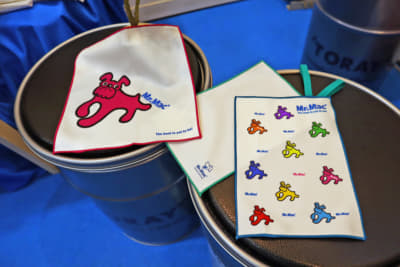 最後にご紹介するのは、東レ・トレシー販売室が開発した『ワンコ用食器洗い クリーニングクロス』です。ワンちゃんの食器ってヌルヌルして困っていませんか? じつは、犬の唾液はアルカリ性が強く、細菌が増殖しやすいんです。これによって食器にはバイオフィルムという膜を形成、ヌルつきの原因となっているそうです。