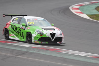 TCR車両とは、概略でいうなら4ドアセダンまたは5ドアハッチバックのボディに、2リッター以下のターボエンジンを搭載。ジュリエッタTCRは名のとおり、2010年に登場したアルファ ロメオの3代目となるジュリエッタがベースだ。エンジンもベローチェ1750TBIに搭載される1742ccの直4ターボをチューニングしたもの。最高出力は340馬力を絞り出し、昨年秋に鈴鹿で開催された世界選手権で優勝したことでも知られている。
