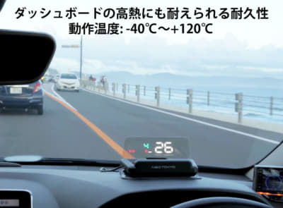 製品は3タイプ。OBD2接続タイプの「OBD-X1」とGPS+シガーソケット接続タイプの「GPS-W1」は、いずれも専用の情報投射専用スクリーンを装備しているので、昼夜天候を問わず見やすく美しい表示を実現。投射専用スクリーンの動作温度は、マイナス40℃から120℃までで、ダッシュボードの高熱にも耐えられる設計。エンジンに連動して自動で電源をオン&オフする機能も付いている。「GPS-03」は、フロントガラスに投射するGPS+シガーソケット接続簡易型だ。