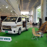 5月18日トヨタ・スープラの国内発表当日、さいたま市北与野駅近くにある埼玉トヨペットでは、「Green Buddy」と言う新ブランドの立ち上げと共に新型キャンピングカー3タイプが披露された。注目のオリジナル製品は、トヨタ・ハイエースをベースのキャンピングカー。カスタマイズやキャンパービルダーとしては24年の歴史をもつToy-Factory(トイファクトリー)とのコラボレーションで開発された3タイプ(A-Type、B-Type、C-Type)が発表され、同時に受注販売が開始された。