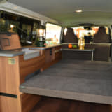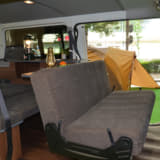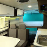 そこで、カスタマイズやキャンパービルダーとしては24年の歴史を誇る岐阜県はトイファクトリーの藤井昭文社長(上の写真左)に開発製造を依頼した。同社は国産パーツにこだわる事でも知られるトップブランド。今回のコラボレーションの実現で3タイプのオリジナルキャンピングカーを開発した。ミニバンからキャンピングカーへの乗り換え需要喚起にも期待されている。