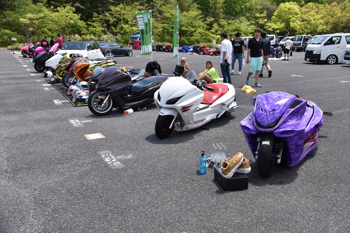 もっと規模の小さなイベントや大きなイベントの一部を使用したカスタムカーイベントでは2輪と4輪を合わせた展示というのもないことはないが、なんといっても3輪車も同時に展示となるのは非常に珍しい。