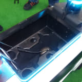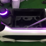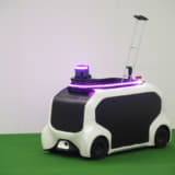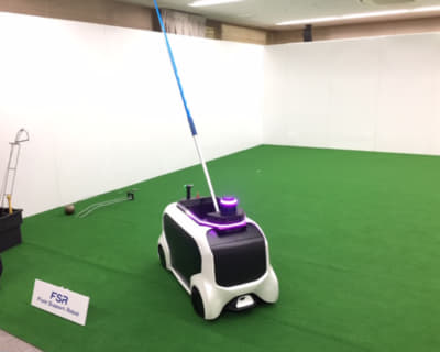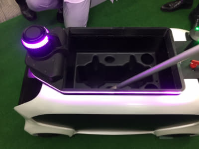 最後のフィールド競技サポートロボット「FSR:Field Support Robot」は、主にハンマー投げや槍投げなど投てき競技で回収時間の短縮と運営スタッフの労力低減を目的に開発。車両は運営スタッフに自動追従し、障害物に対しても自動的に回避して走行できる。