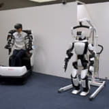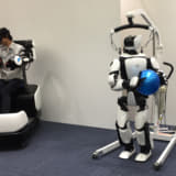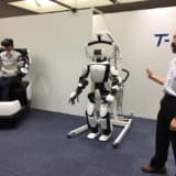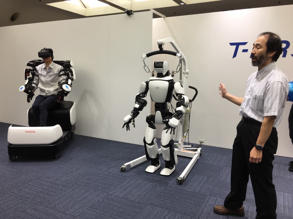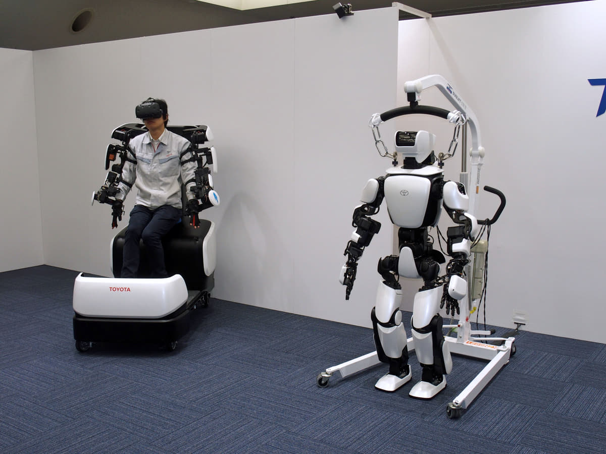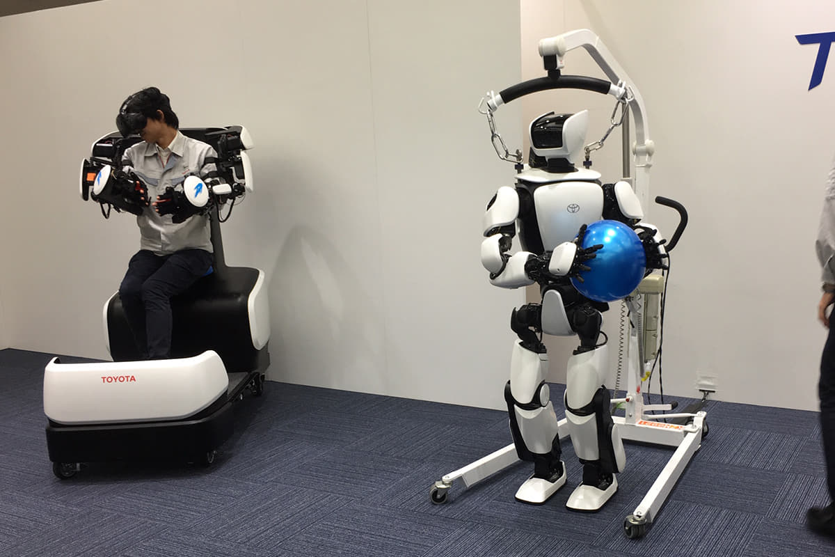 「T-HR3」は、2017年に他のロボットとの間で腕の動作や握力の感覚などを相互に共有することができるヒューマノイドロボットして公開済み。離れた場所にいる操縦者はT-HR3にかかる外からの力を感じながら、操縦者と同じ動きをT-HR3にさせることができる。