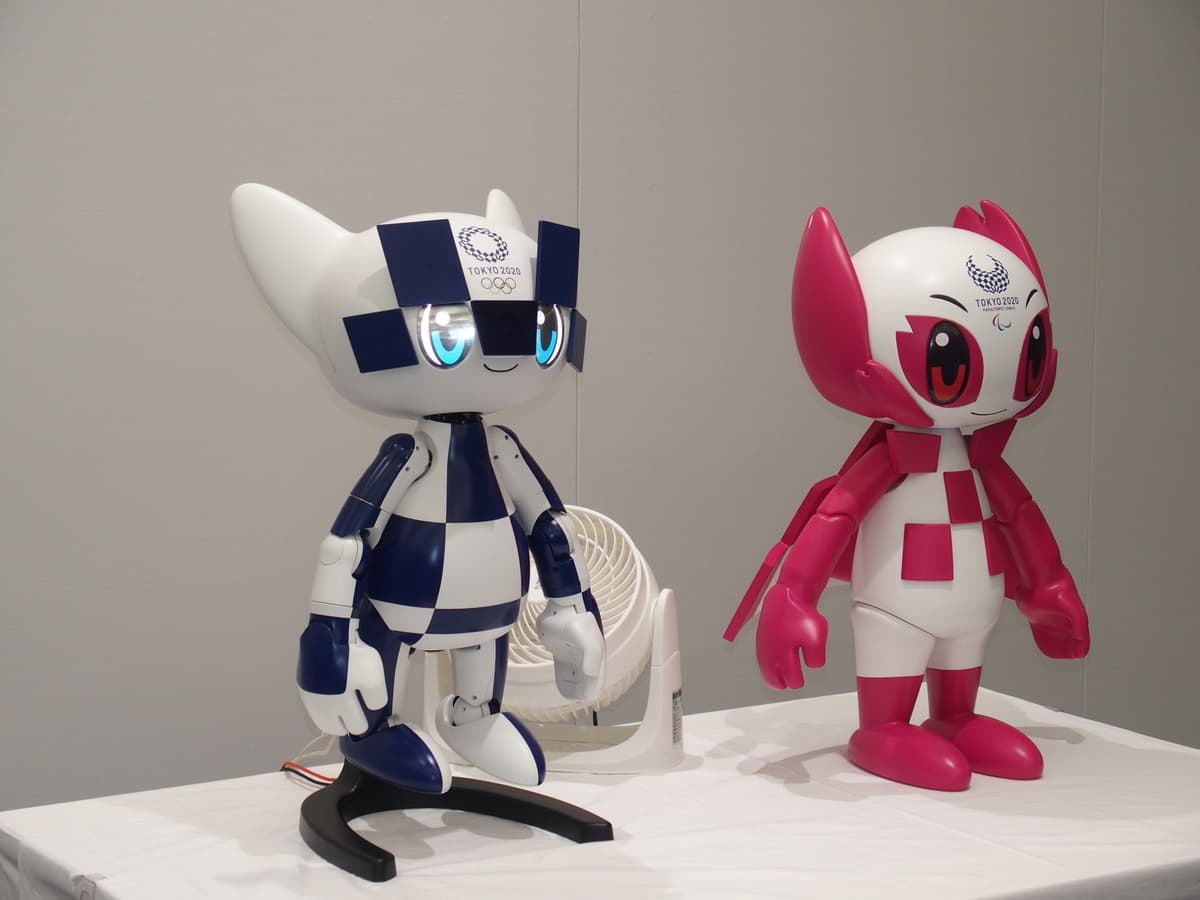 マスコットロボット「ミライトワ」「ソメイティ」は、東京2020組織委員会とトヨタで開発したもので、目となる部分には液晶ディスプレイを組み込み、頭部に搭載したカメラで人を認識すると目の表情から様々な感情を表現。身長は70cmほどで全身には20の関節を備えて柔軟な動作制御に対応する。