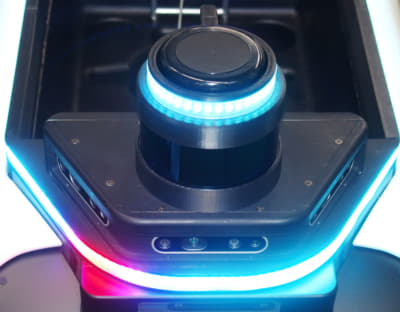そして、仮想現実の技術を使って克服することを目的に開発されたのが、遠隔地間コミュニケーションサポートロボット「T-TR1」。縦長のディスプレイと360度撮影できるカメラを装備し、ベース部に組み込まれた駆動部によって自在に動き回ることができる。