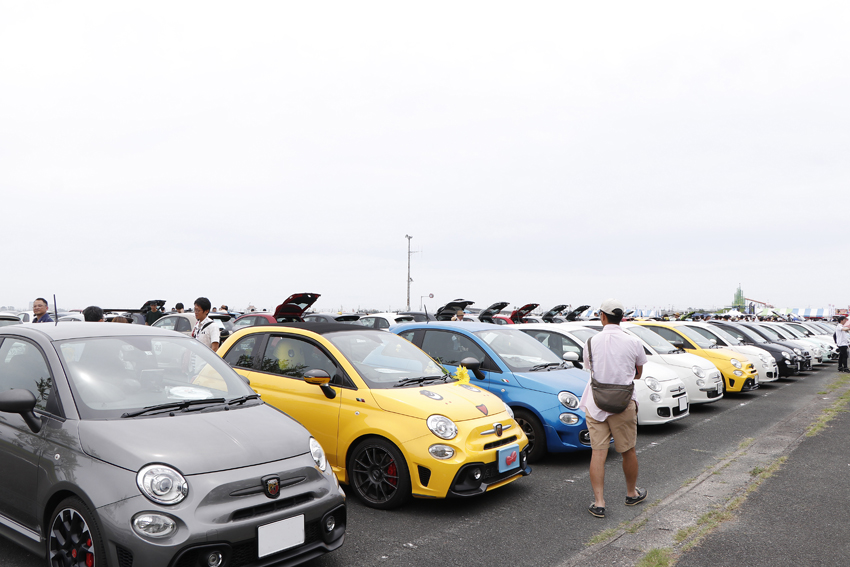 そんな500(通称チンク)が一堂に会するイベントとしては最大級の「All Japan FIAT&ABARTH500 Meeting」が静岡県の浜名湖で7月21日に開催。実はこの全国ミーティング、ファンの間では恒例のイベントとして毎年開催されていたのだが、諸事情によりお休みしてたこともあって、久々の開催となった。エンジンオイル「Unil Opal」の5周年記念イベントとの共催で行なわれた。