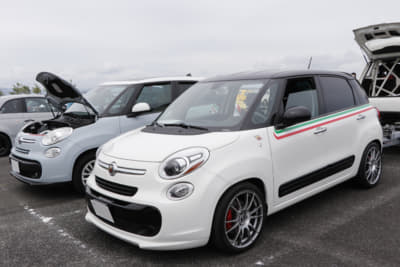 早速会場へ行くと、思い思いのカスタマイズを施したチンクの数々。チンクはボディカラーも豊富でファッショナブルだから、めちゃ華やか。モータースポーツを楽しんでいるというオーナーや日本未導入のロングボディボディ版「500L」に乗っている人、ワイドボディキットを装着して迫力満点のカスタマイズオーナーまで、個性たっぷりなクルマがズラ~リ勢ぞろいとなった。